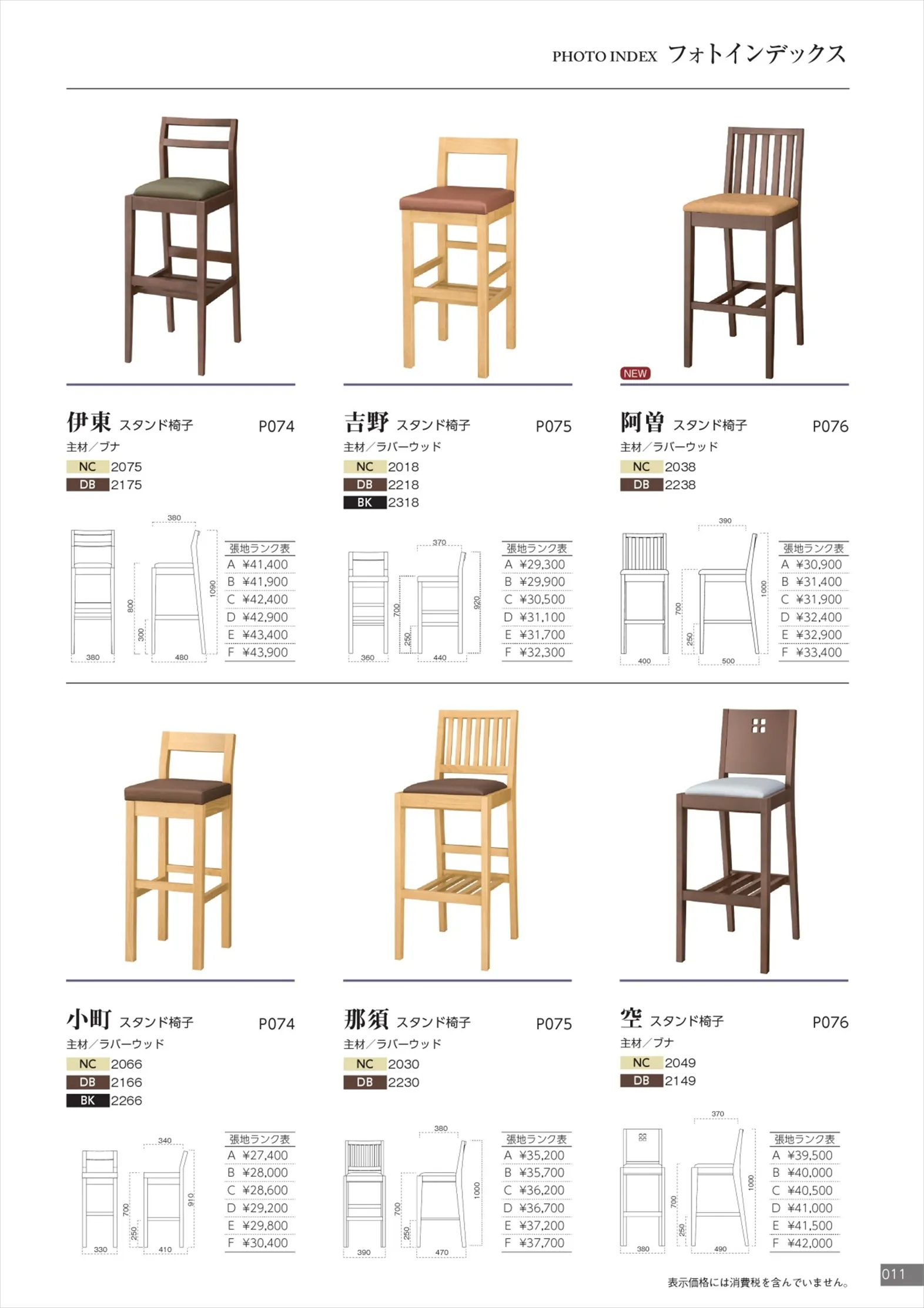 PHOTO INDEX フォトインデックス Wood chair(Product lineup & Spec)