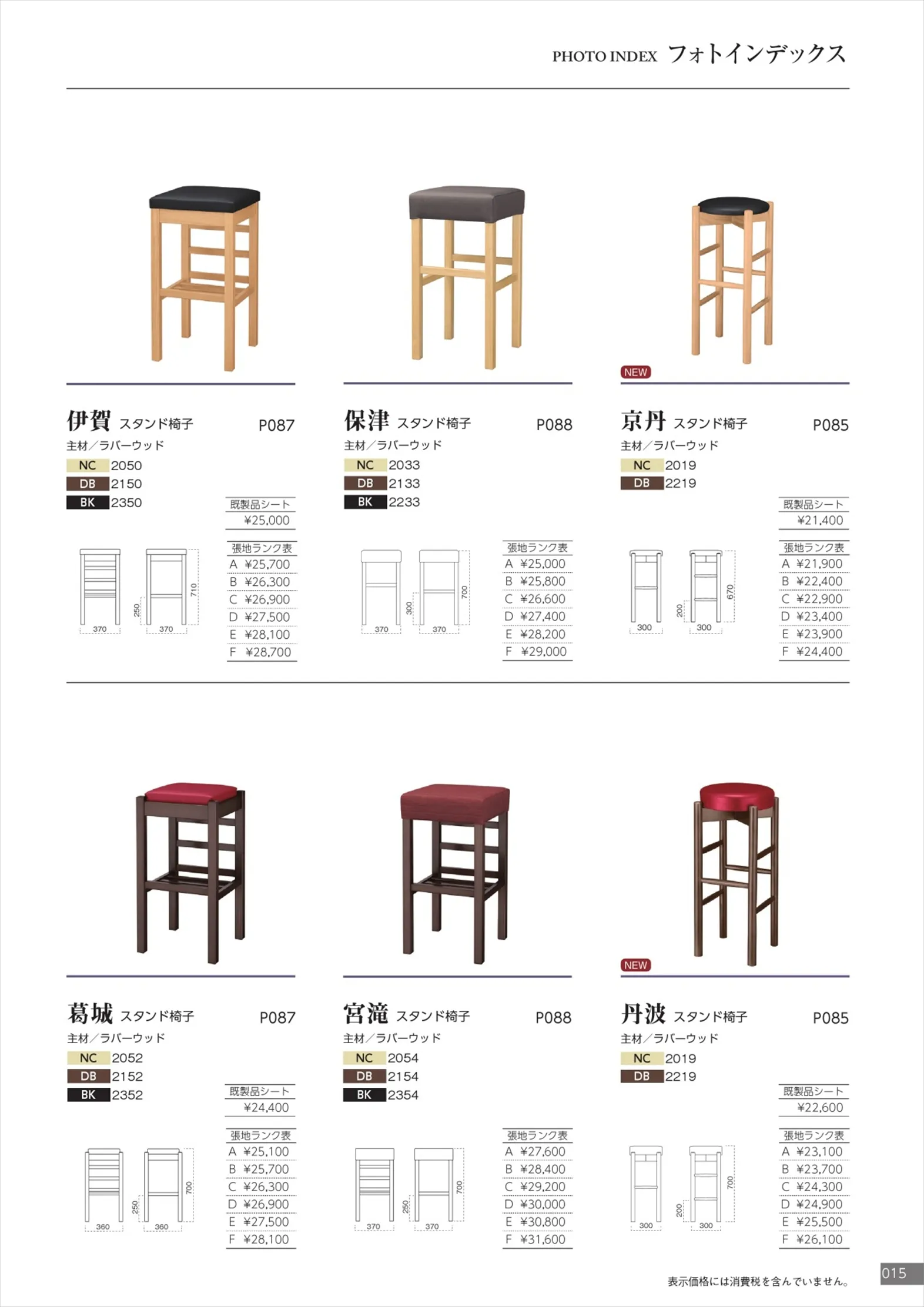 PHOTO INDEX フォトインデックス Wood chair(Product lineup & Spec)