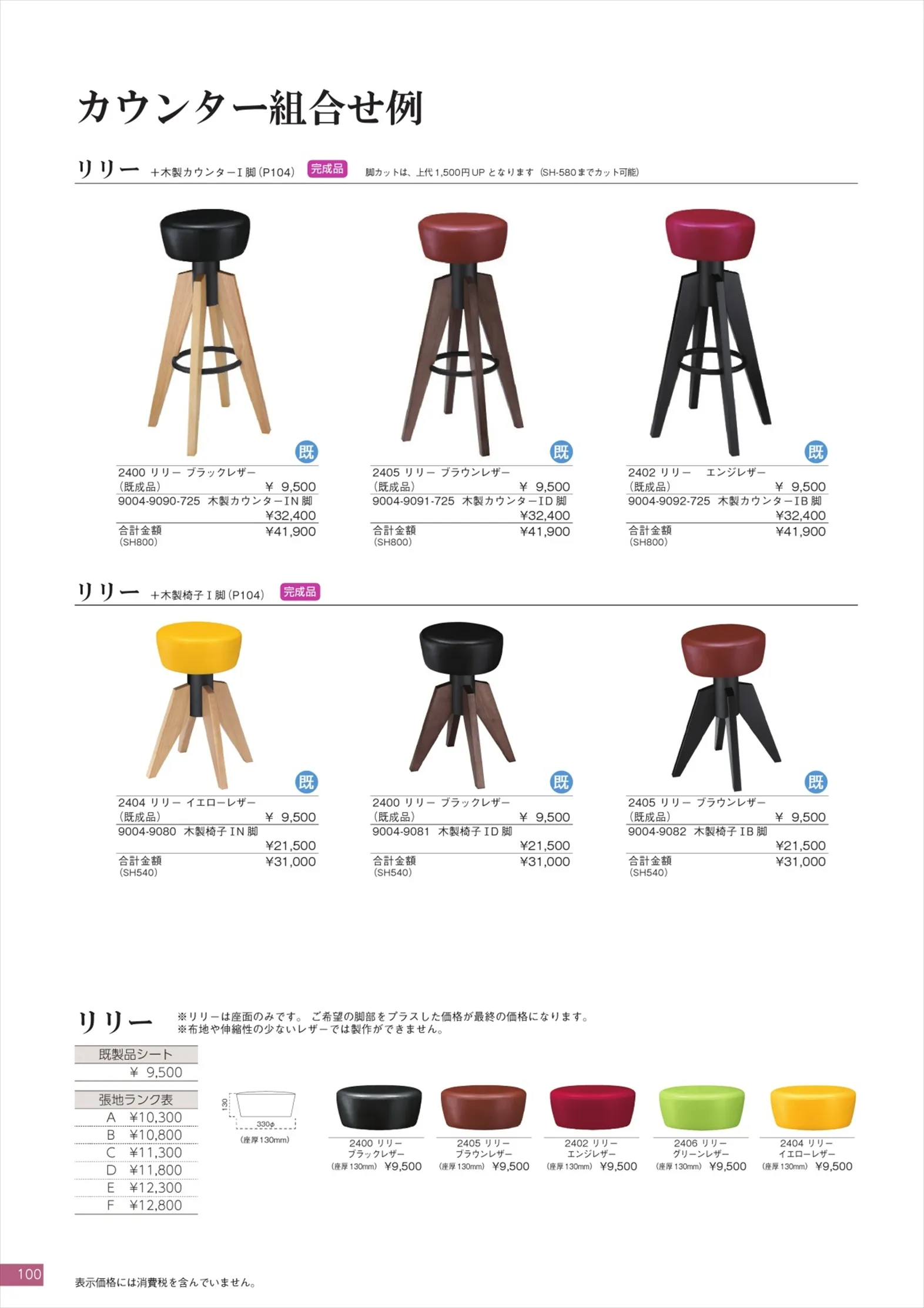 カウンター組合せ例 リリー,リリー+木製カウンターⅠ脚,リリー+木製椅子Ⅰ脚 / リリー+木製カウンターⅢ脚,リリー+木製椅子Ⅲ脚,リリー+スチール脚